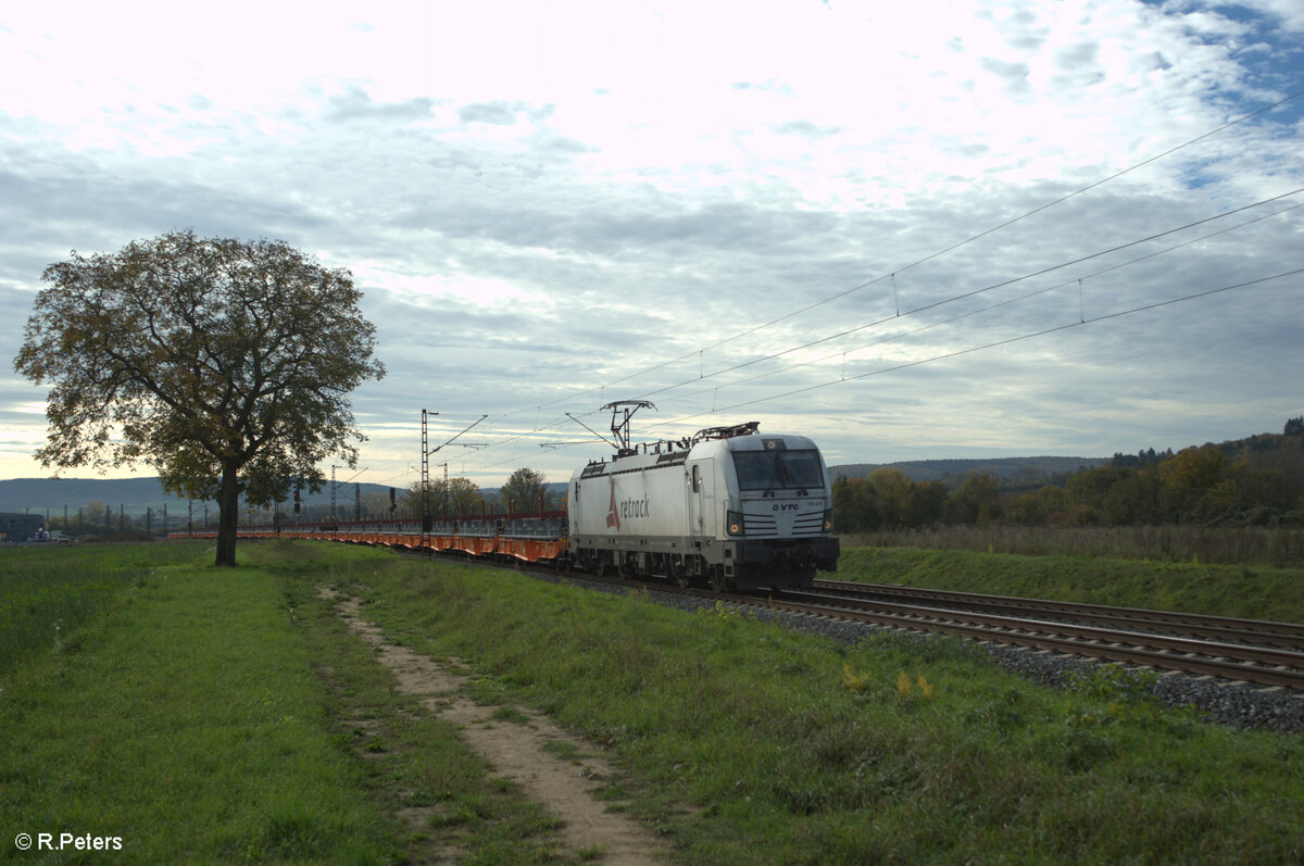 193 815-8 "Kätchen" zieht bei Thüngersheim mit einem WEchselpritschen LKW-Walter in Richtung Norden. 27.10.24