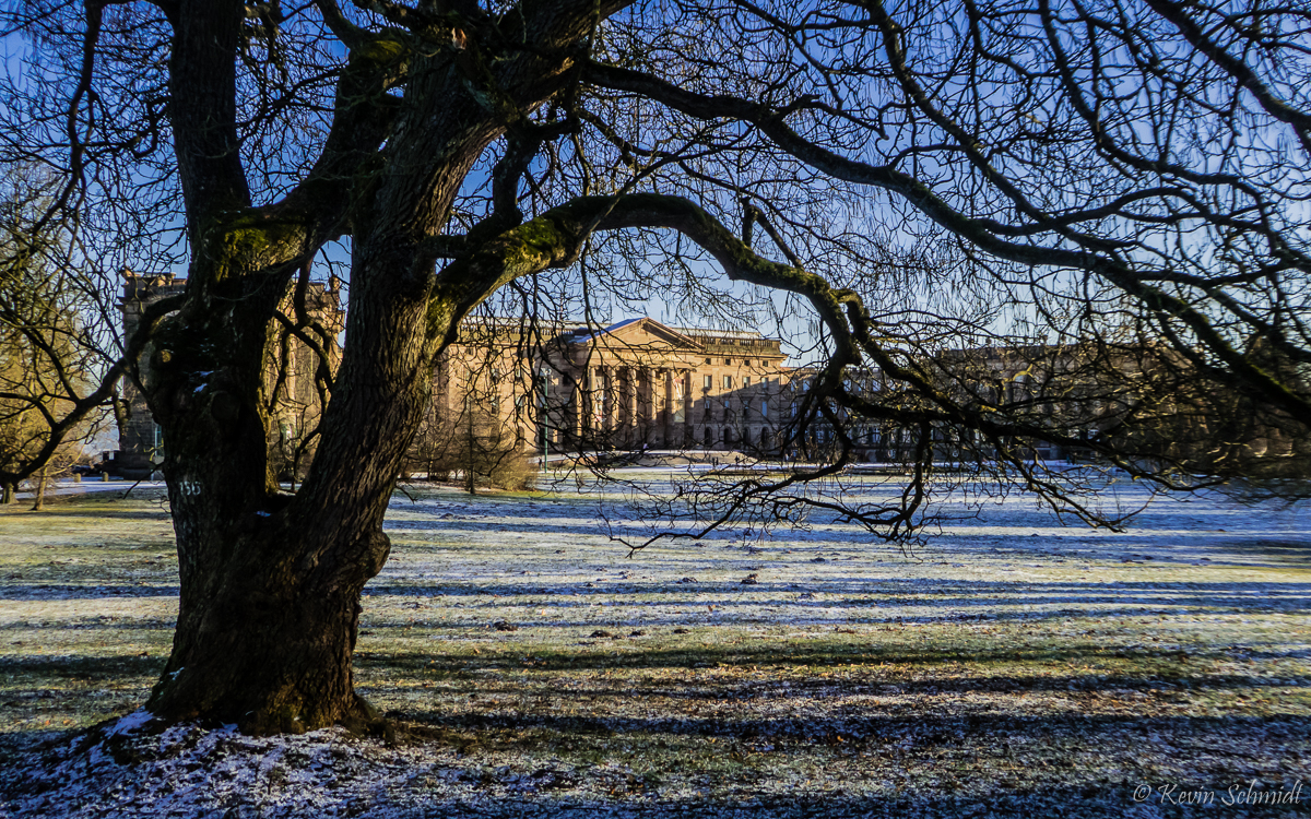 Im Kasseler Bergpark Wilhelmshöhe führt diese kleine Brücke über einen Wasserfall an einem künstlichen Felshang. Der gesamte Park ist ein barockes Gesamtkunstwerk der Garten- und Landschaftsgestaltung. (06.01.2017)