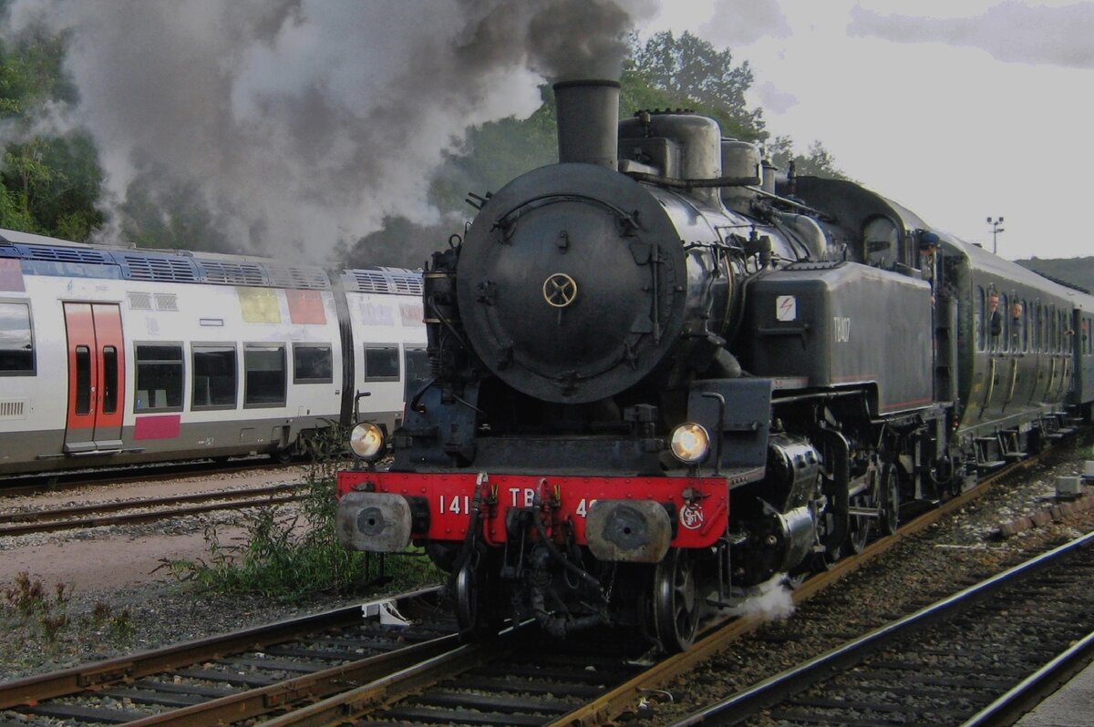 Vier Baureihen Dampfloks könnten den pariser Vorortbahnen ihren Eigene nennen. Für die Ostliche Vorortbahnen war die Reihe 4401-4512, später 141 TB vorgesehen. Eine davon, 141 TB-407 ist heute bei der AJECTA bewahrt geblieben und zieht/schiebt sogar Dampfpendelzüge zwischen Longuev ille und Provins. Hier treft 141 TB-407 am 18.September 2010 mit ein Dampfzug aus Provins in Longueville ein während die AJECTA Dampftage.