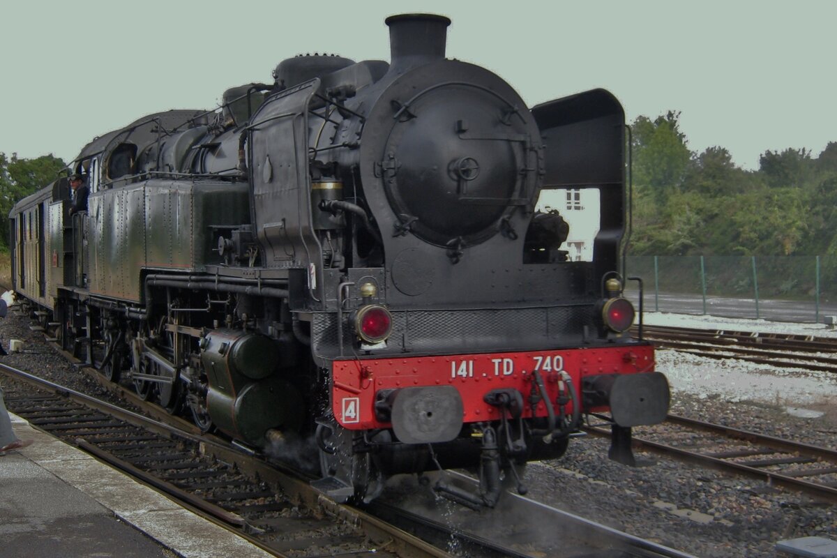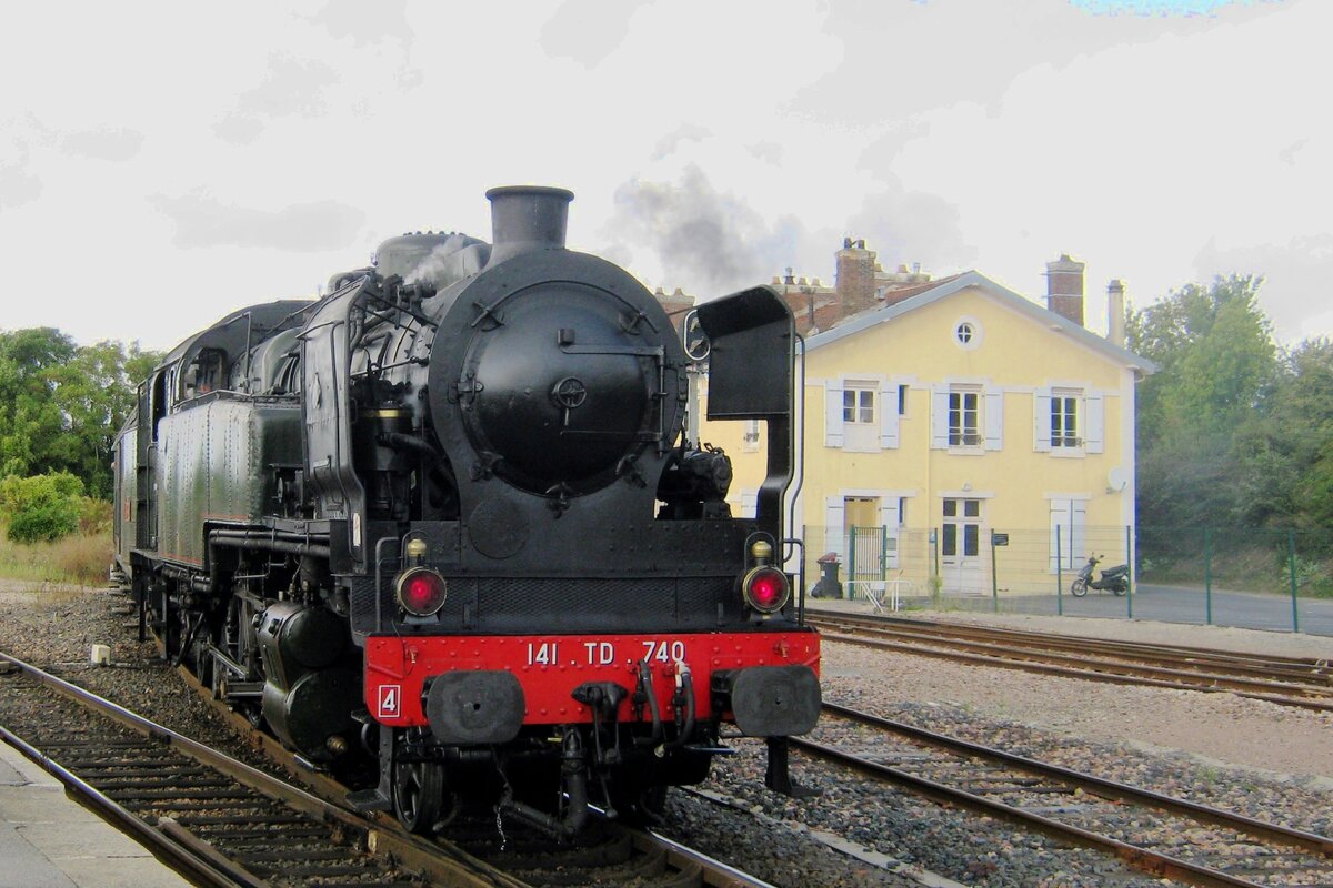 SNCFs 141 TD-740 schiebt am 18 September 2011 ein Dampfpendelzug nach Provins aus Longueville.