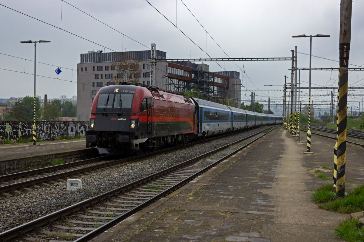 Ein ÖBB-Taurus bringt fährt Autos nach Norden, 31.3.17. Das Bild wurde von der Heldenburg in Salzderhelden aufgenommen, deren Außenmauer man am unteren Bildrand sieht.