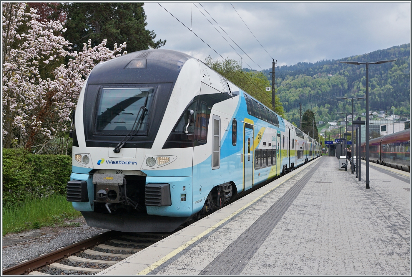 Der Westbahn ET 4010 029 (629/129) ist als WB 979 in Bregenz angekommen. Der KISS ist auf dem langen Weg von Lindau Insel (ab 15:20) nach Wien Westbhanhof (an 22:52).