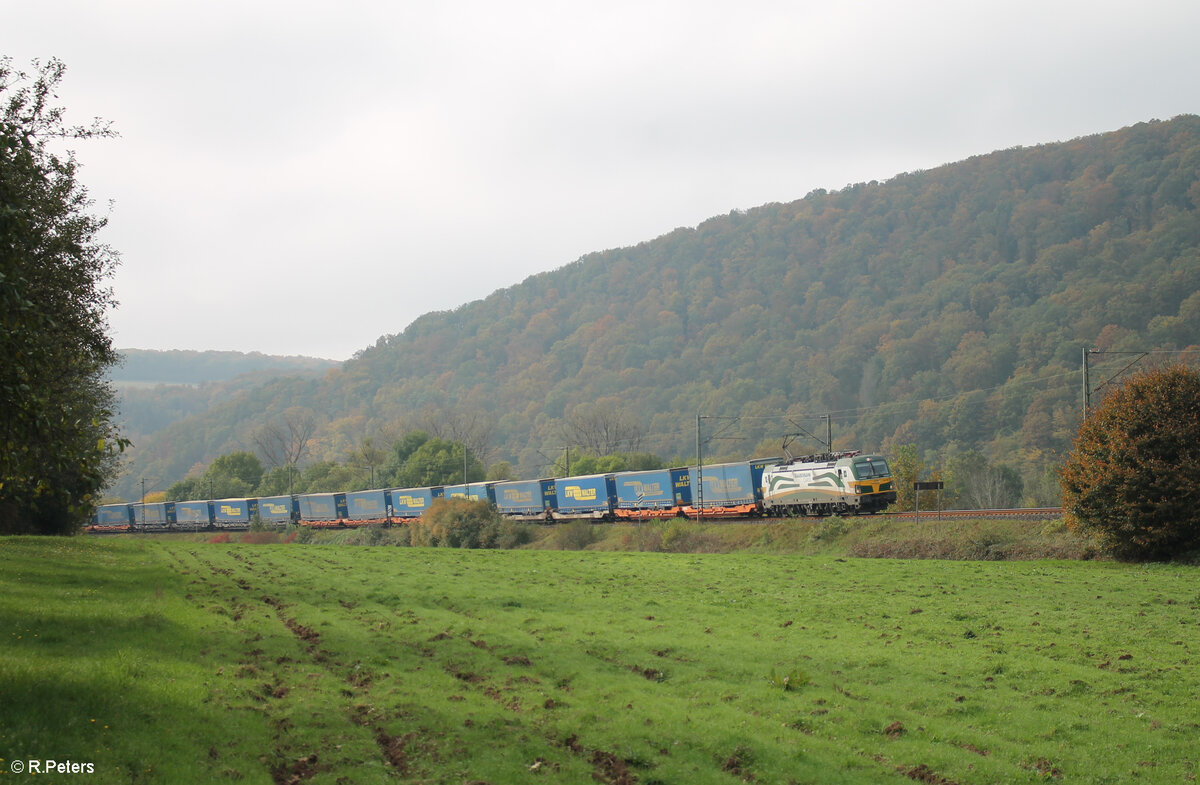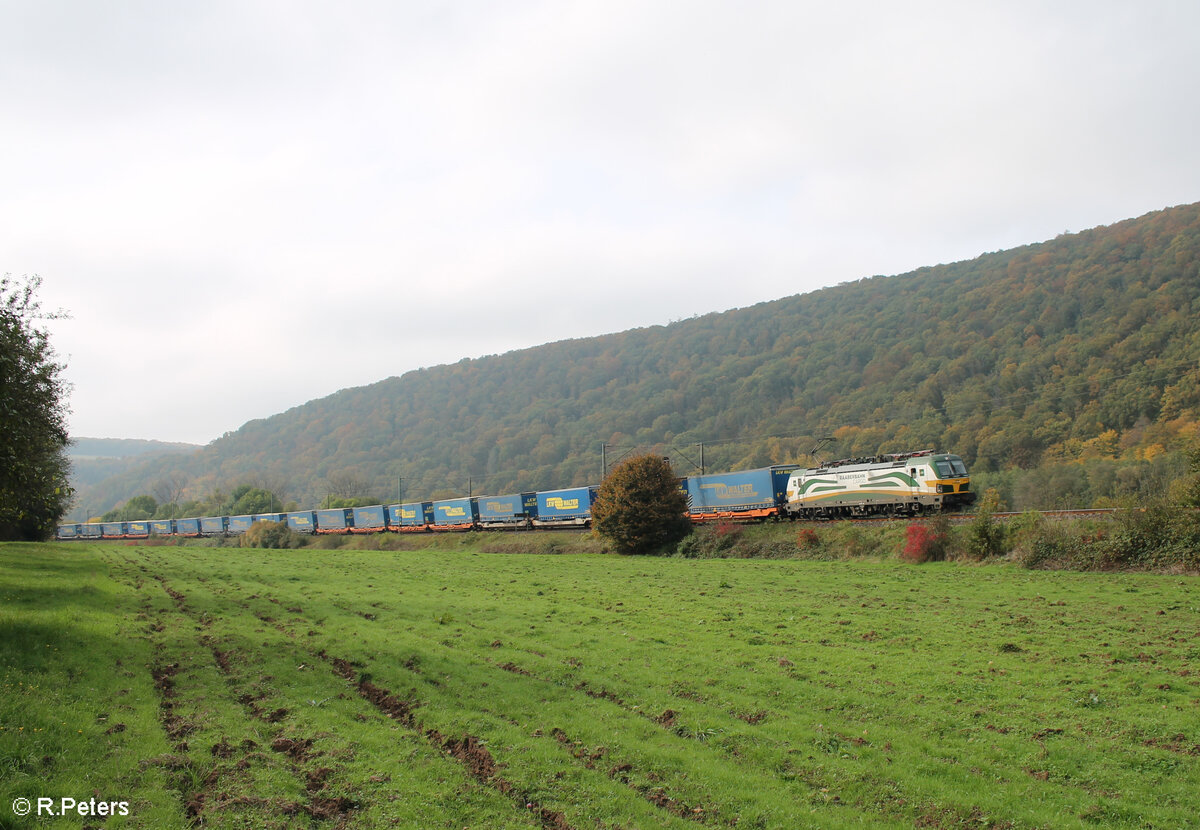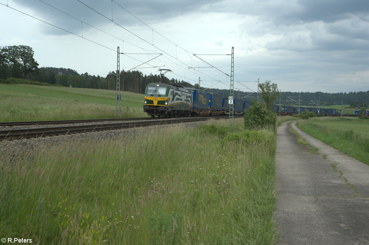 193 245 zieht mit einem LKW-Walter Zug durch die Netztrennstelle Mainz Bischofsheim. 01.09.24