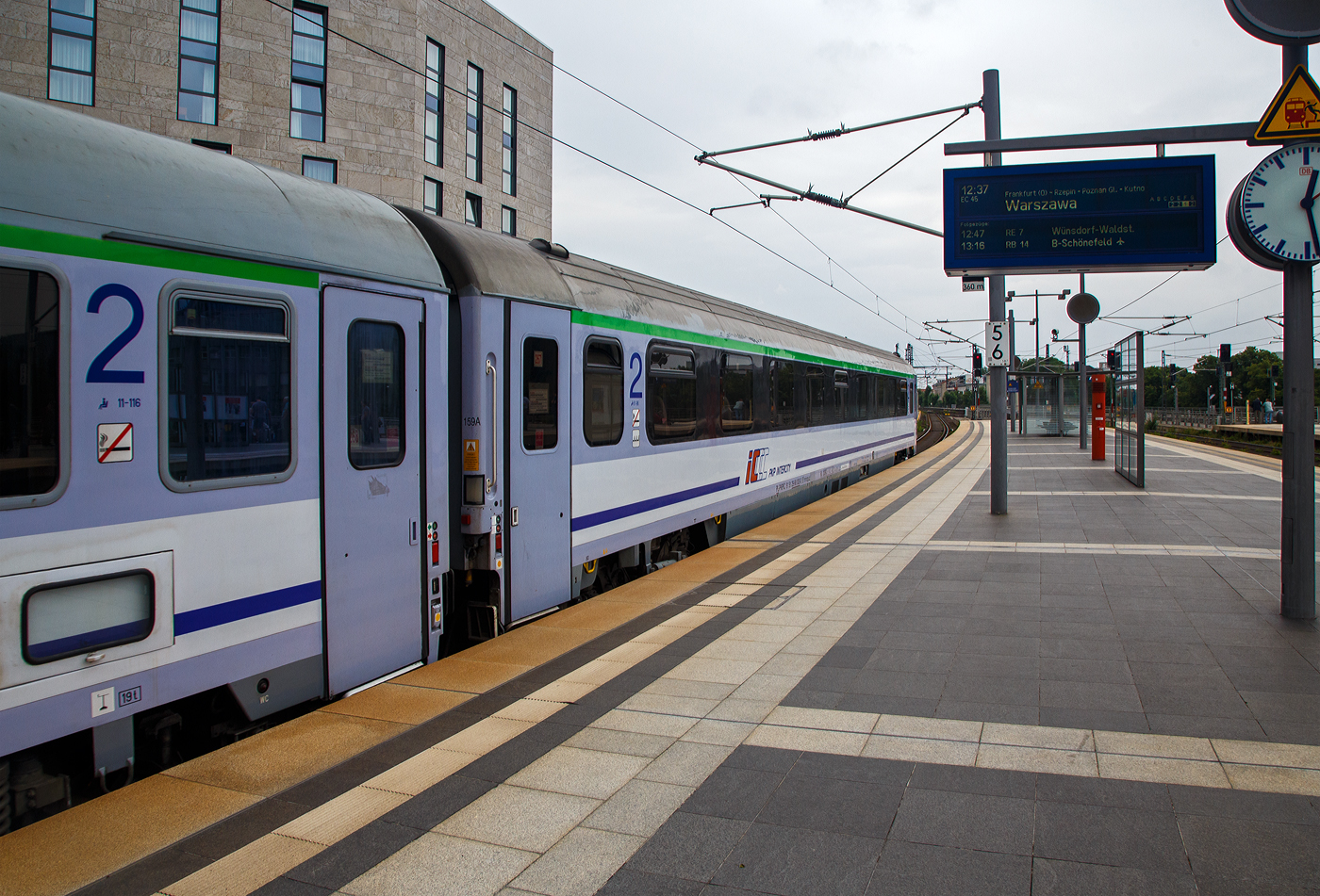 Innenraum/6er Abteil des 2. Klasse klimatisierte Abteilwagen (Reisezugwagen) PL-PLKIC 61 51 21-90 032-3 der Gattung B11mnouz (Typ Z1B / Bdmnu) der PKP Intercity, eingereiht als Wagen 268 in den „Berlin-Warszawa-Express“ EC 45 (DB) / EIC 71004 (PKPIC), am 24. Juni 2017 im Hbf Berlin.