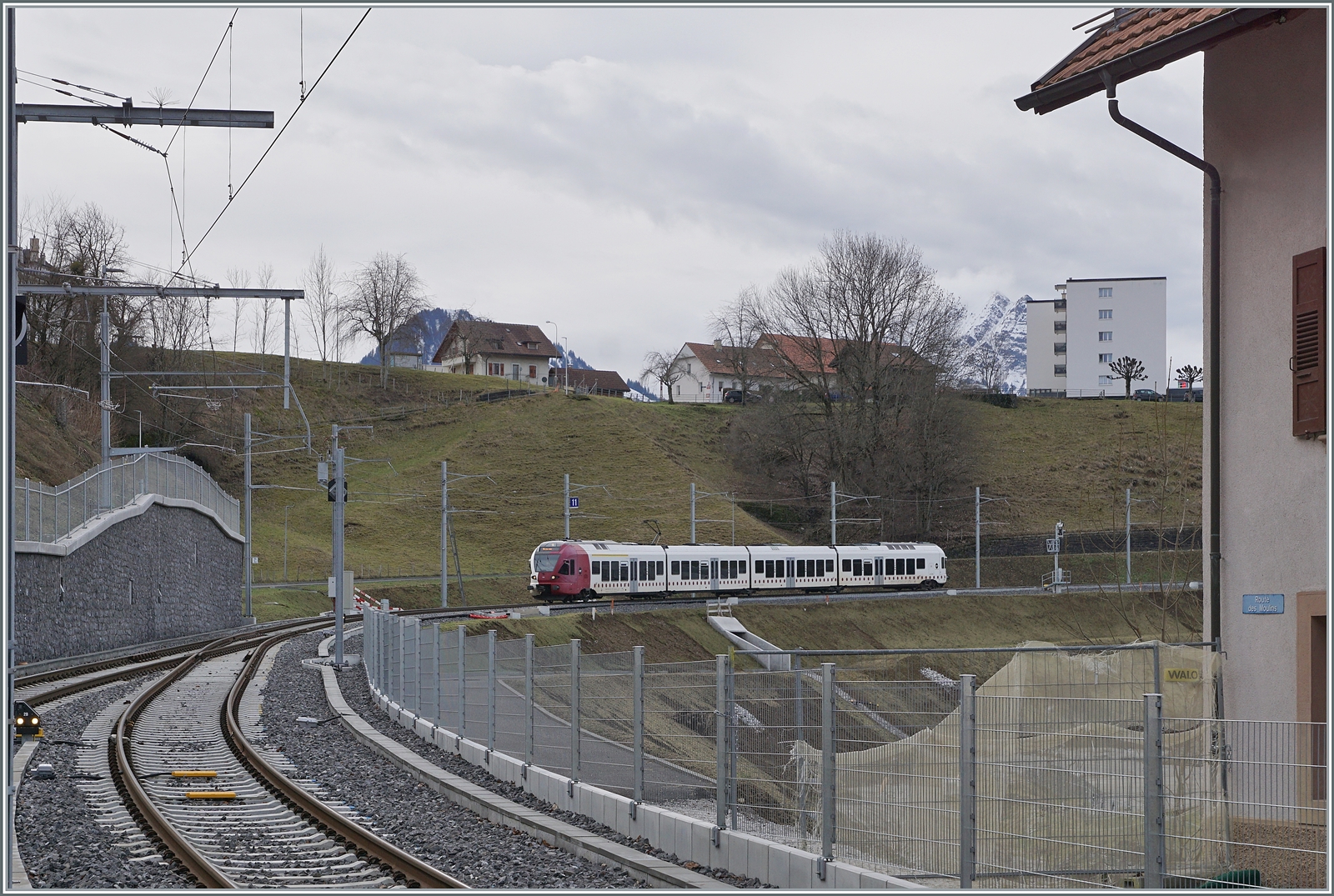 Für einen von der Beteiligung recht grossen Schulferien Anlass verkehrten die zwei TPF RABe 527 192 und 197 als Extrazug ab Lausanne. Erwähnenswert die Tatsache, dass in Lausanne planmässig keine TPF Züge verkehren. Da die grosse Gruppe auf Gleis 3 satt auf Gleis 1 auf den Extrazug wartete, fuhr dieser dann leicht verspätet ab, was mir den Vorteile bot, doch noch das eine oder andere Bild des Zuges zu machen.
