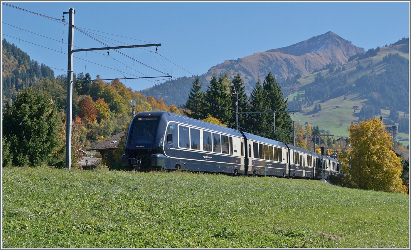 Die MOB Ge 4/4 8002 hat den GPX Interlaken Ost - Montreux im Bahnhof von Zweisimmen übernommen; dies erwähnte ich ja bereits beim vorhergehenden Bild, dieses Bild hier zeigt ein faszinierendes Detail: die Ge 4/4 steht auf den Schmalspurgleisen, die Wagen aber (noch) auf den Normalspurgleisen.