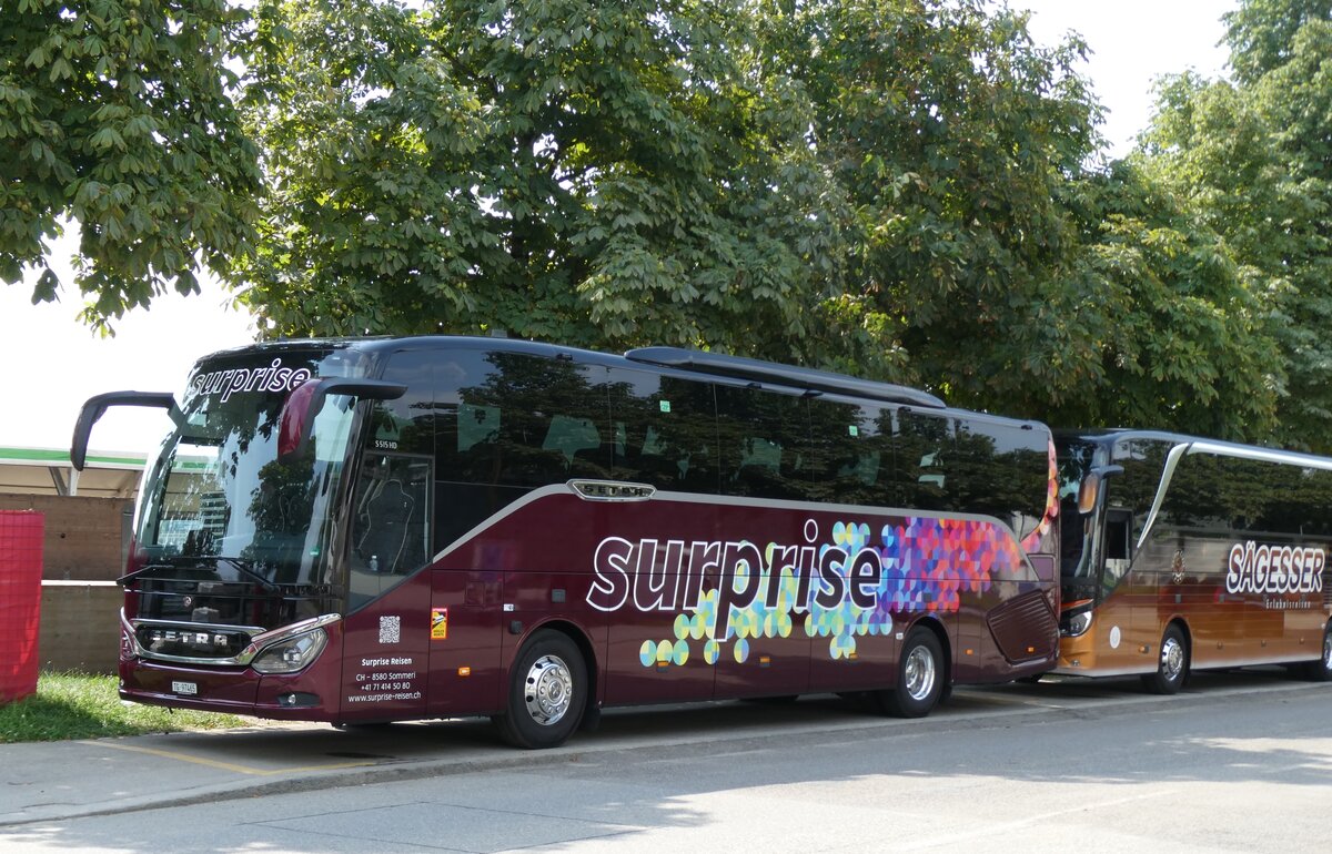 (280'621) - Aus der Schweiz: Surprise, Sommeri - TG 99'463 - Setra am 20. September 2025 in Seefeld, Reitstall