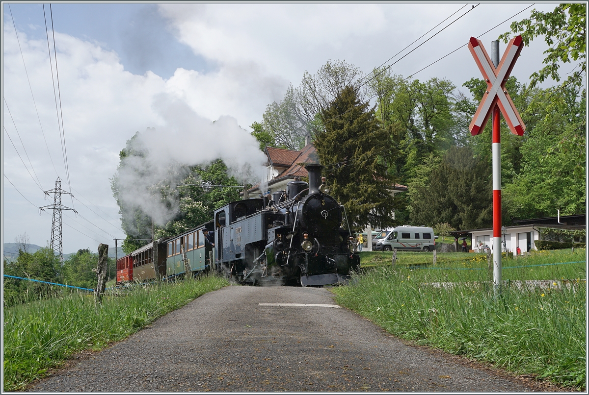 Furkalok am Genfersee mit dem Riviera-Express. Die HG 3/4 3 der BFD beim Schloss Blonay. Juni 2017.