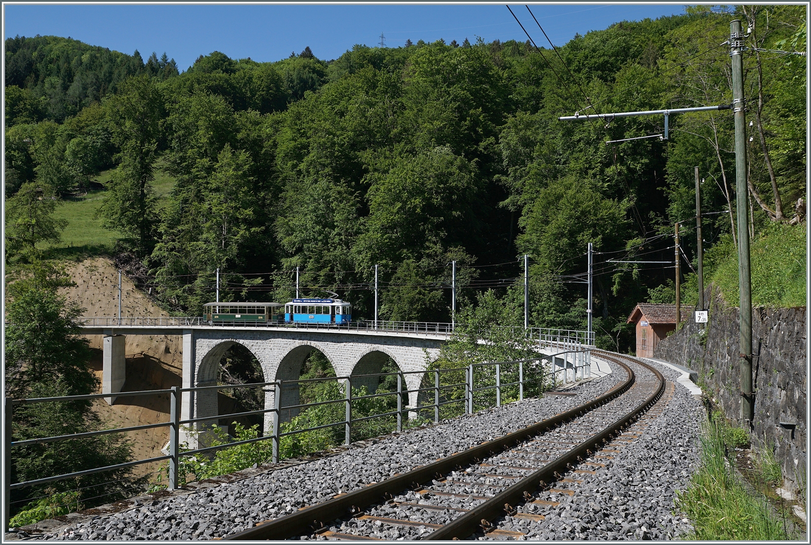 Die Blonay-Cahmby G 2x 2/2 105 und der CEV Gk 38 in Chaulin, zwei Fahrzeuge, die mir seit der Ankunft vor vielen Jahren in der Region vertraut sind.