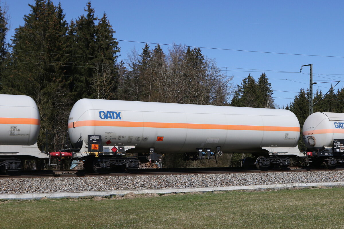 482 014 mit einem Druckgaskesselwagenzug aus Gemünden kommend am 8. August 2022 bei Himmelstadt im Maintal.