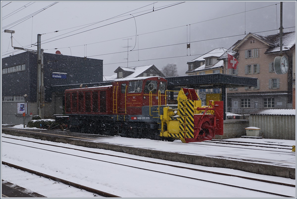 Am 19 September 2019 steht 14253 ins verregneten Erstfekld während die Erstausgabe (und hoffentlich nicht der Letztausgabe) des Bahnhofsfests "Bahnen am Gotthard" -mit jeden Stunde ein Sonderzug zwischen Erstfeld und Göschenen.