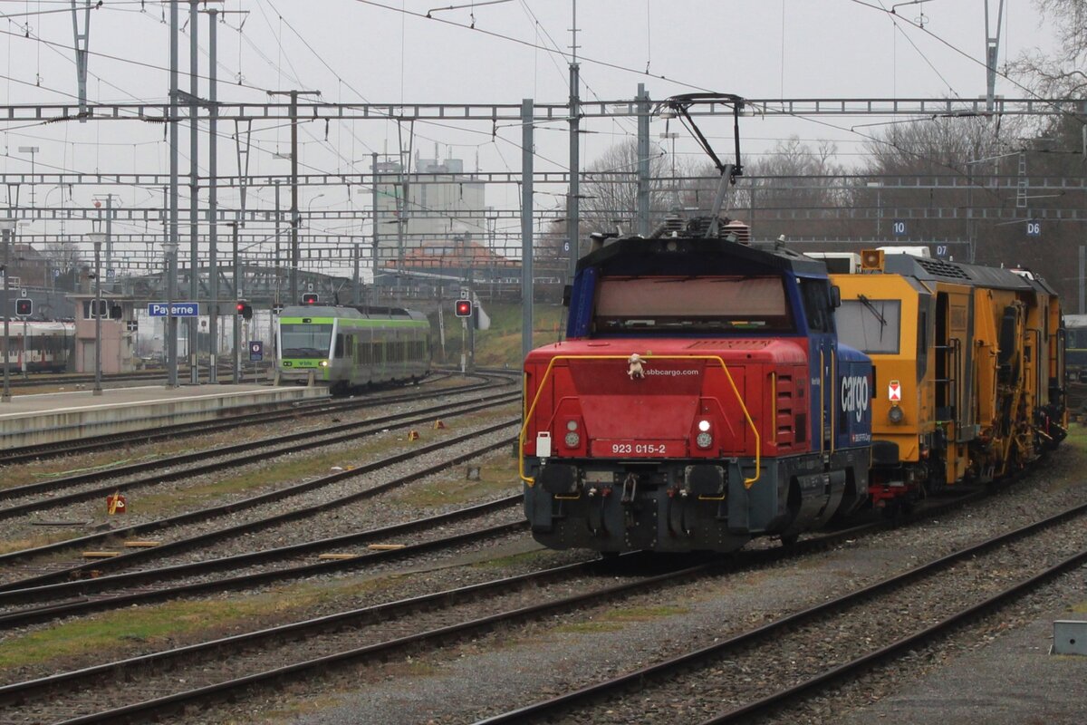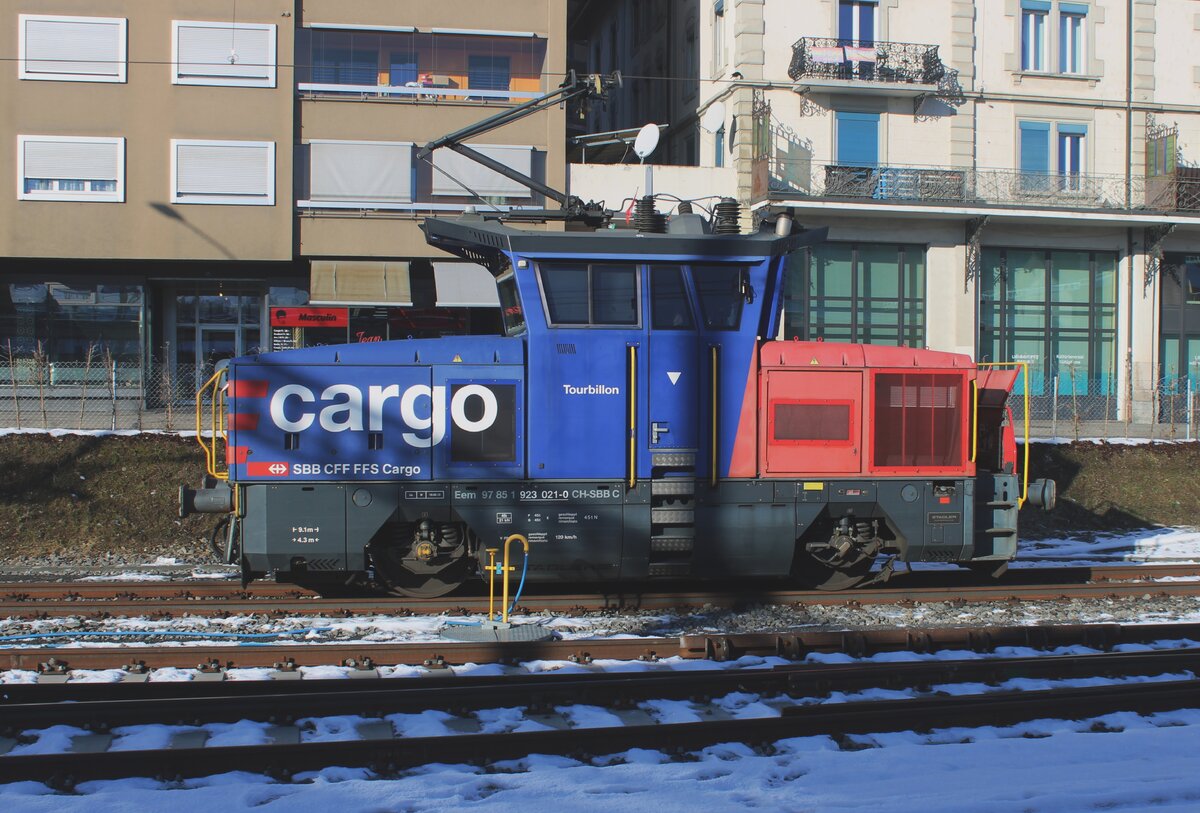 Stadler RABe 523 016 und Eem 923 021-0 im "Bombardiere"-Ort Villeneuve.