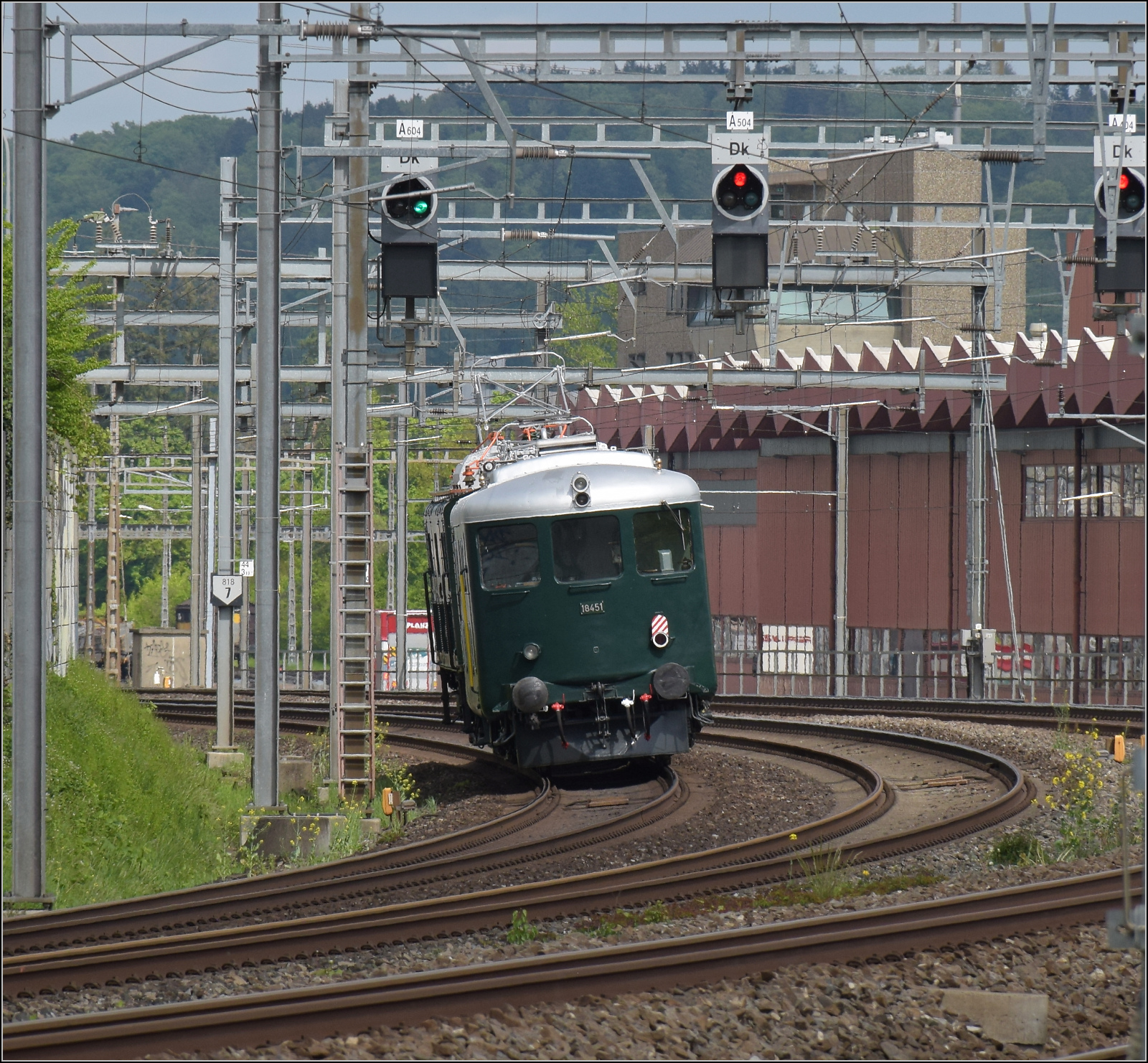 Die SBB Re 4/4 II 11253 in TEE Lackierung erreicht mit ihrem Schnellzug 515 von Olten kommend den Bahnhof von Aarau.