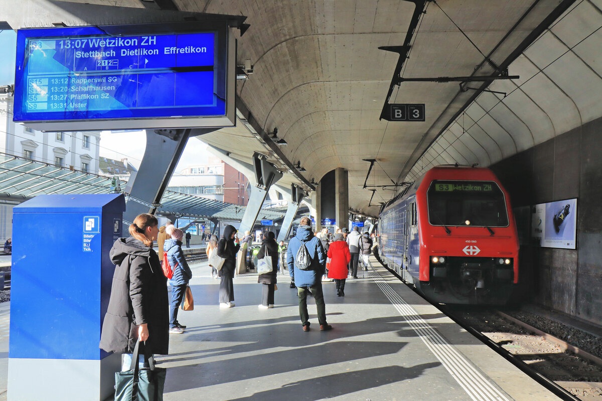 Mit der S-Bahn quer durch Zürich: In Effretikon wartet im Abstellgleis eine Komposition Re 420 + Doppelstockwagen + Re 420 auf ihren Einsatz in der Stosszeit, vermutlich als S19 nach Dietikon oder sogar bis Koblenz. Im Bild Lok 420 222. 6.Februar 2023
