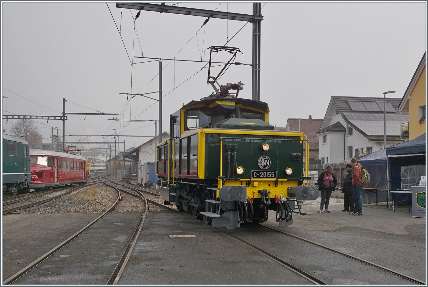 Möglicherweise der neue Zug nach Balsthal ab Fahrplanwechsel? Re 4/4 III 13350 scheint auf der OeBB-Strecke eine neue Zukunft zu haben mit einem ex-BLS-Jumbowagen und einem EW-I-Steuerwagen. Balsthal, November 2023.