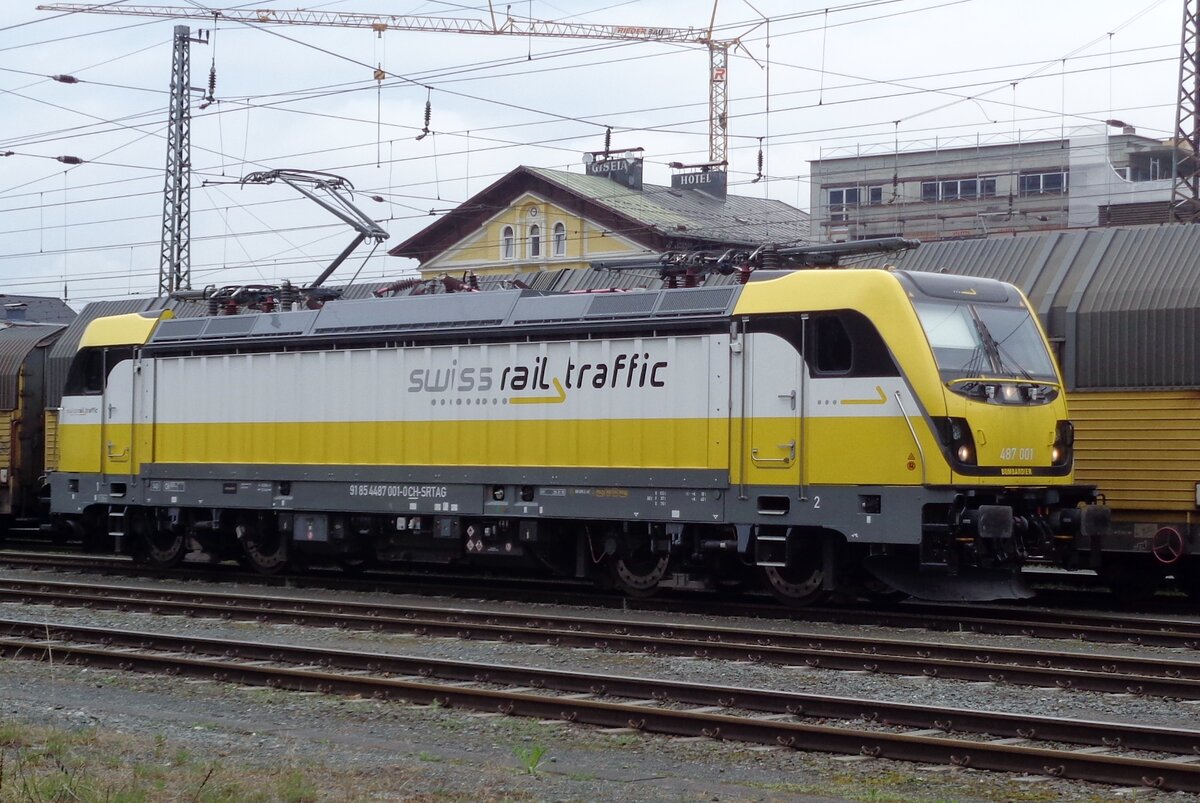 Die Rem 487 001-0 „Murmeltier“ (91 85 4487 001-0 CH-SRA) der Salzburger Eisenbahn Transportlogistik (SETG), ex SRT Rem 487 001, ex BTK 187 010, ist am 07 September 2024 beim Hauptbahnhof Siegen (D) angestellt.