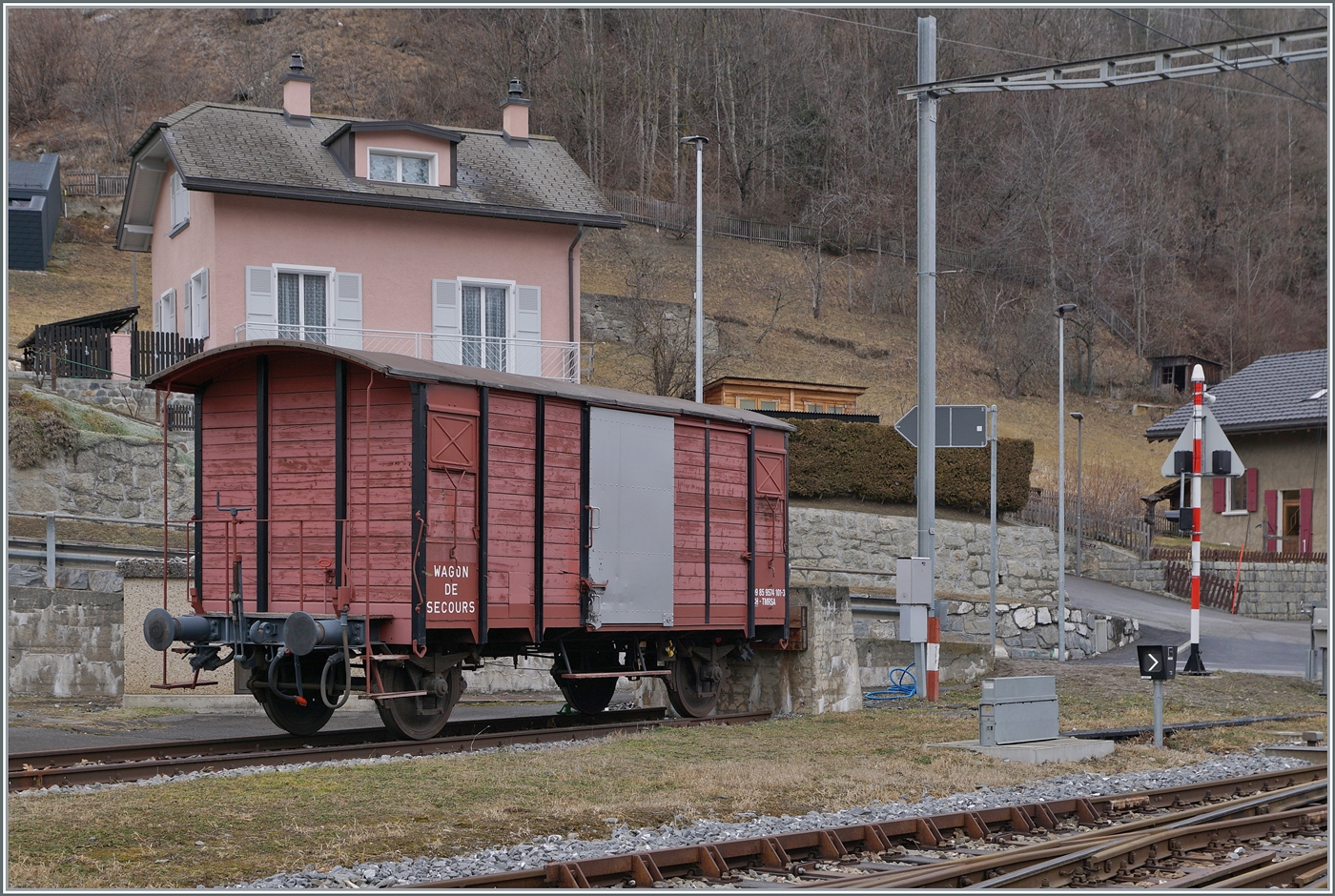 Ein herrlicher Kontrast bietet der im Vordergrund rechts noch im "Einsatz" stehenden K 2 zum neuen TMR RABe 533 701 im Hintergrund auf Gleis 1 im Bahnhof Orsières. Das Bild entstand auf dem Strassenübergang und zeigt auch schön die Gleisentwicklung in Orsères.