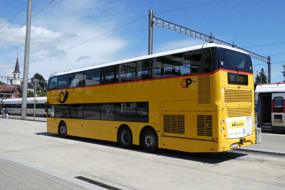 (278'478) - PostAuto Ostschweiz - SG 443'911/PID 11'038 - Alexander Dennis am 4. August 2025 beim Bahnhof Laufen