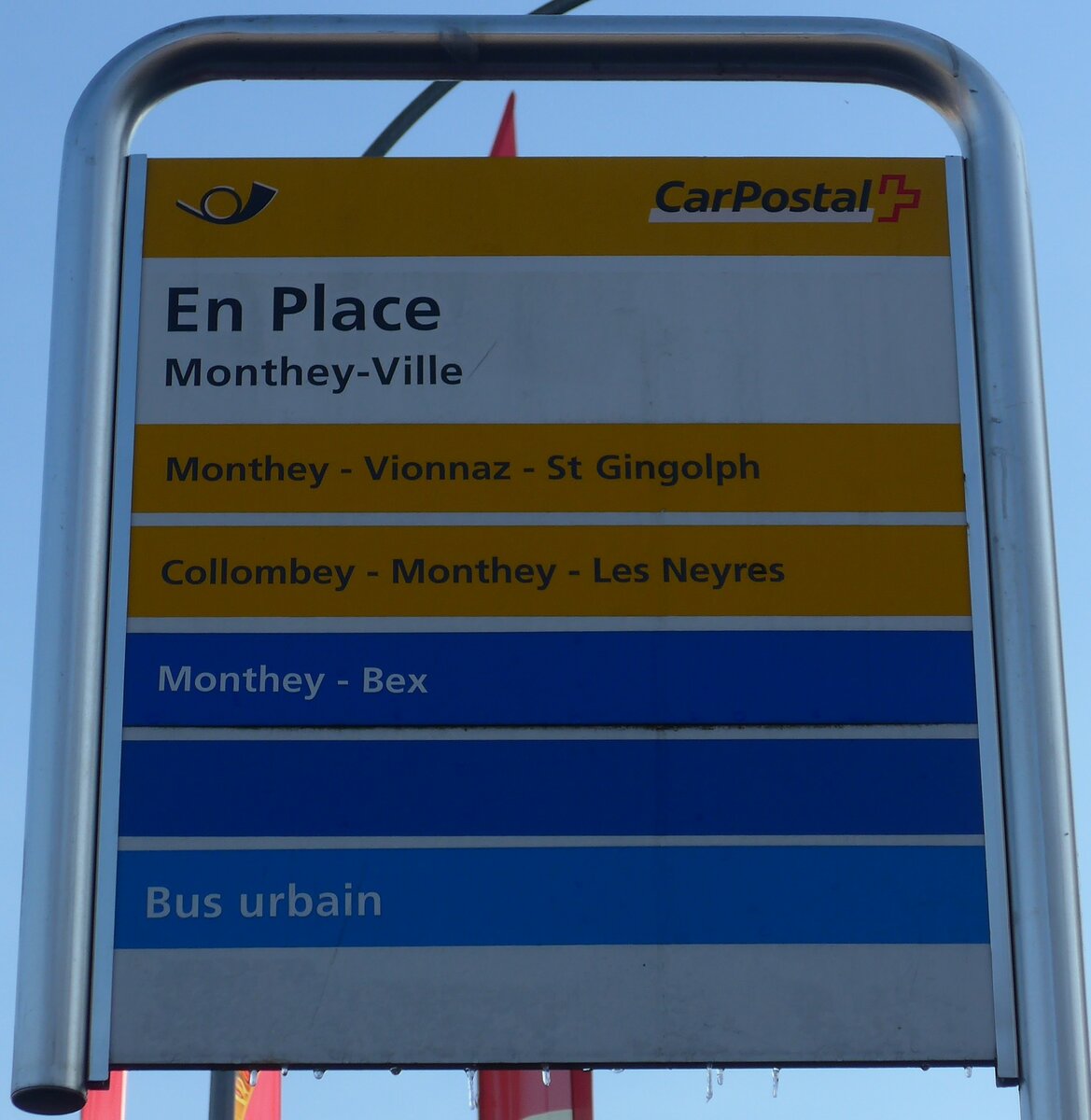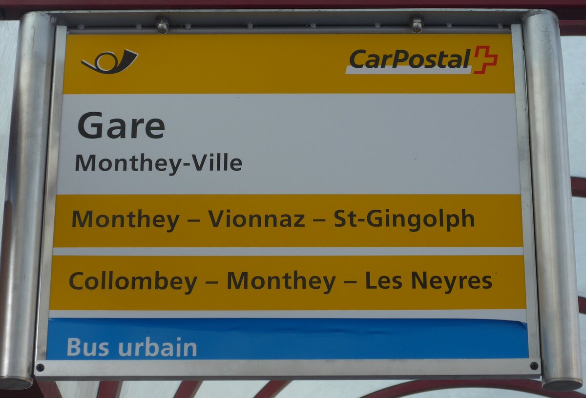 (177'581) - PostAuto/Bus urbain-Haltestellenschild - Monthey-Ville, En Place - am 2. Januar 2017