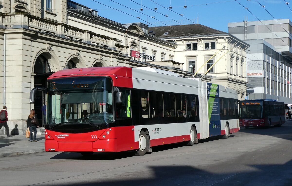 (282'665) - SW Winterthur - Nr. 111 - Hess/Hess Gelenktrolleybus am 29. November 2025 beim Hauptbahnhof Winterthur