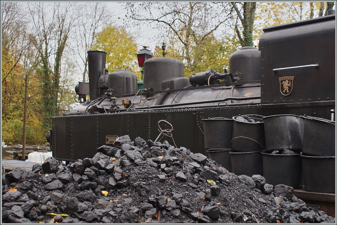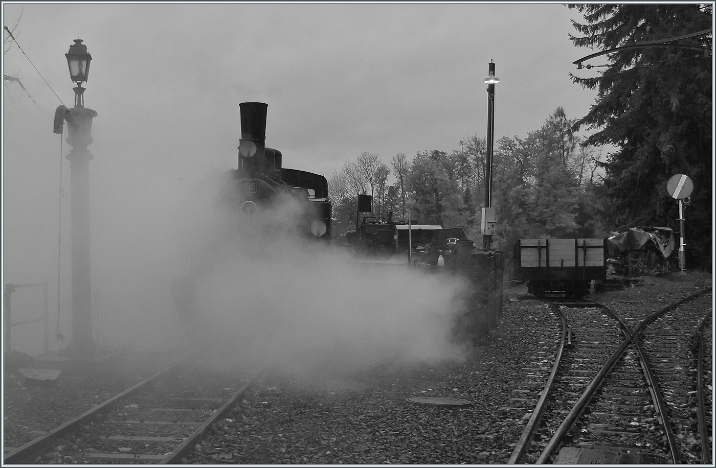Die Blonay-Chamby G 2x 2/2 105 rangiert in Blonay den CEV C 21.