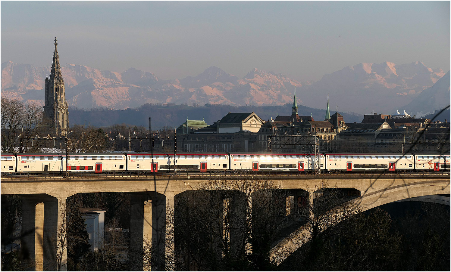 SBB: Mit EW IV Wagen verstärkter Doppelstockpendel auf der Neubaustrecke "BAHN 2000" Mattstetten-Rothrist bei Roggwil am 26. August 2015.