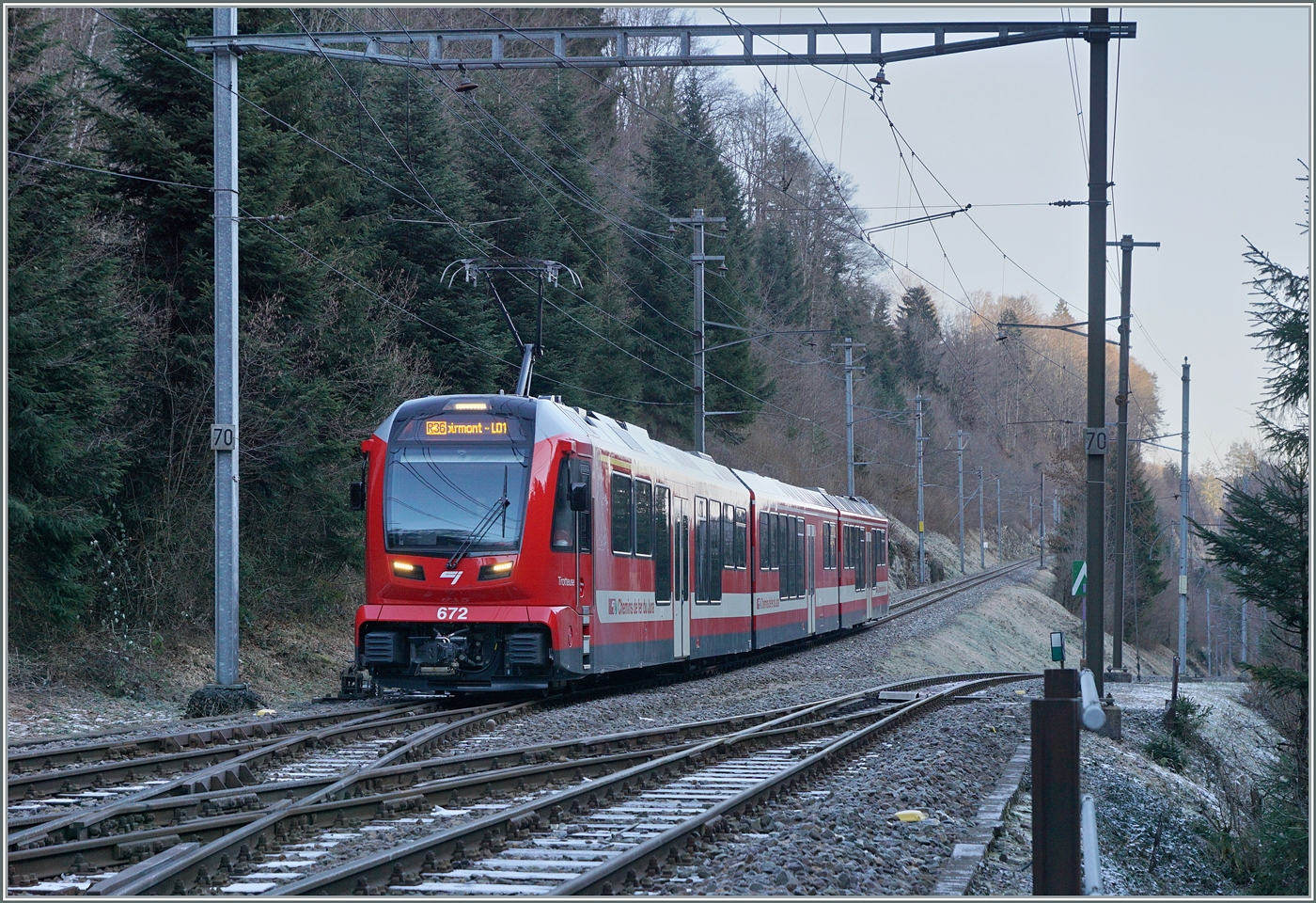 Der CJ Be 4/4 652 wartet mit seinem Steuerwagen ABt in Saignelégier auf die abfahrt nach Glovelier. Unter anderem durch den Kauf der CJ ABe 4/12 muss die CJ nun ihre Be 4/4 verkaufen, Abnehmer ist die MOB die sie mit den Alpina Triebwagen (welche praktisch baugleich sind) ergänzen wird.