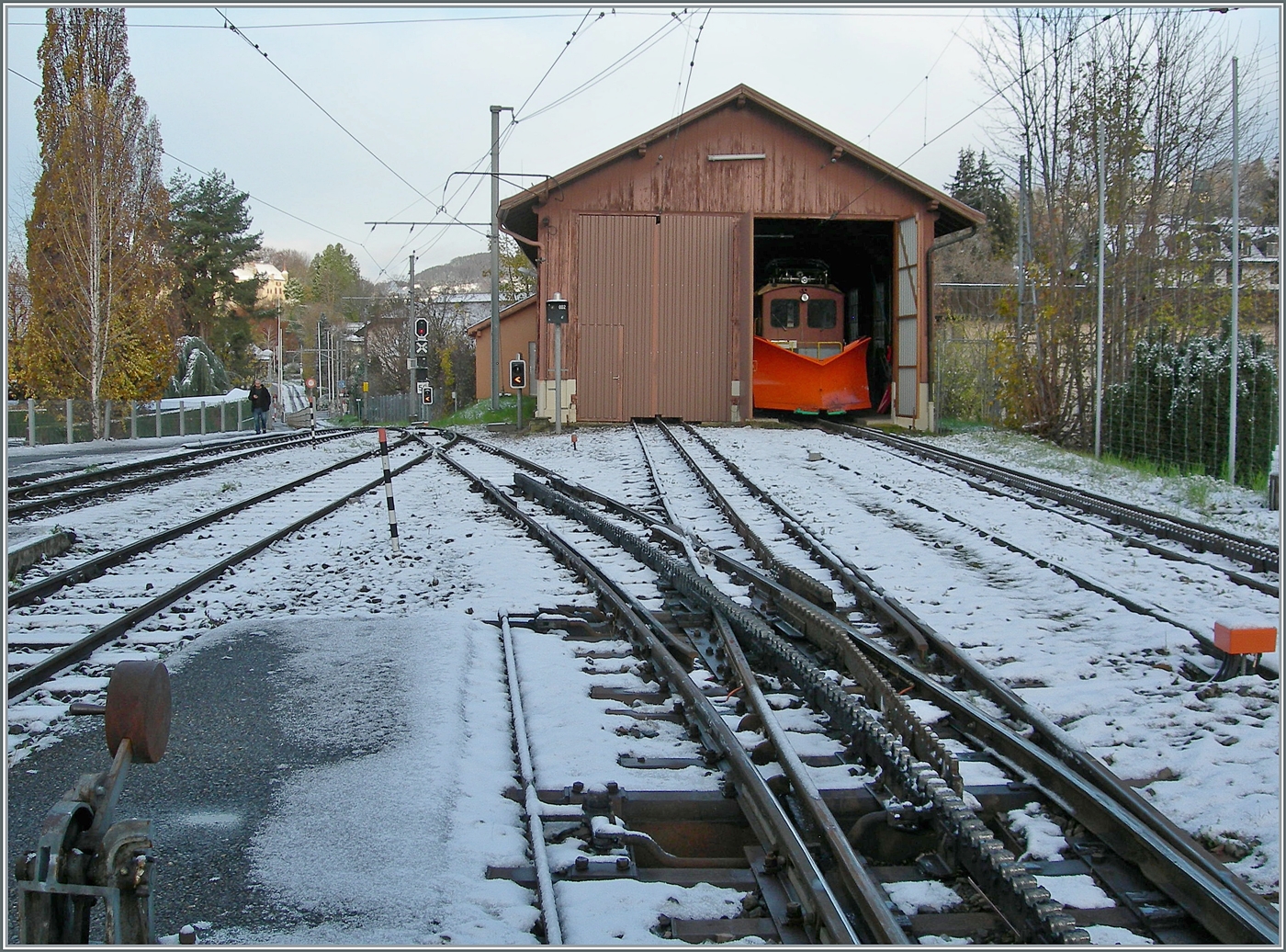 Während der CEV GTW Be 2/4 "Blonay" Vevey erreicht, steht auf dem Nebengleis der CEV Te 82 mit einigen Güterwagen.