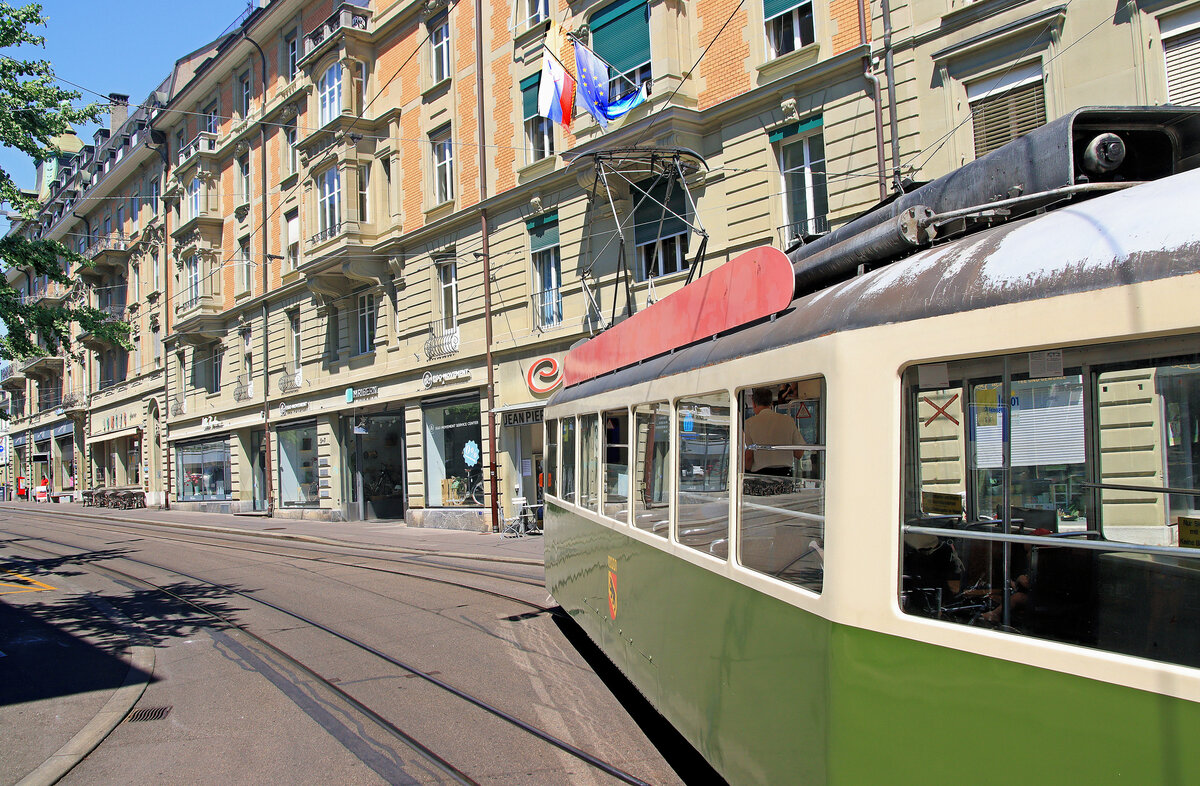 Damals war es noch leicht, ein ganzes Fahrzeug in Tiefenbrunnen aufzunehmen. Pedalmotorwagen 1532 am 21.April 1976