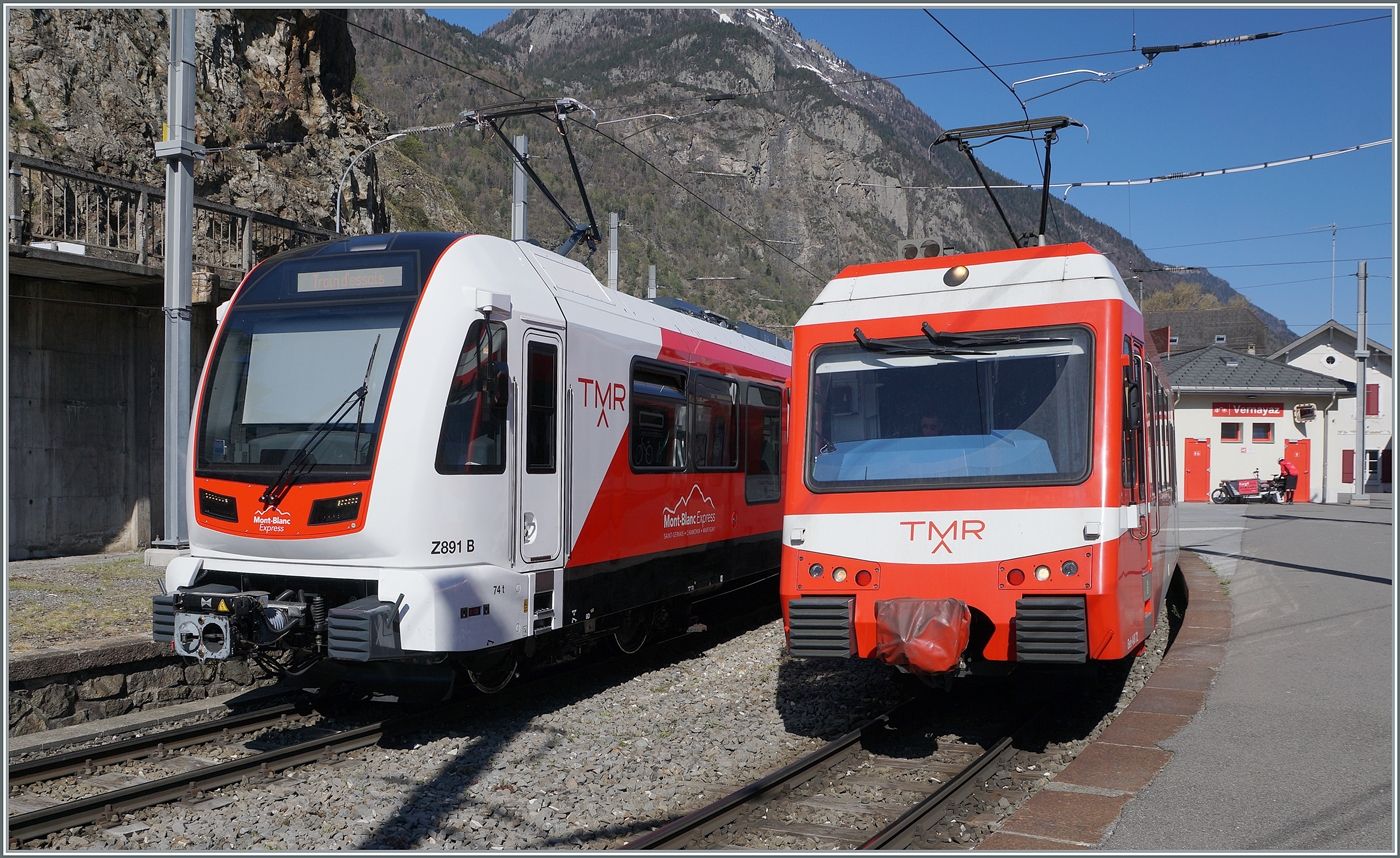 In der Regel übernimmt der aus Richtung Le Châtelard ankommende Triebwagen den Dienst für die Rückfahrt. Doch wenn wie heute der Fahrzeugumlauf eine Änderung erfährt kommt es zu der eher seltenen Situation, dass in Martigny gleich beide Schmalspurgleise belegt sind. Während der Beh 4/8 21 als Regionalzug 26245 in Martingy endet, wartet der Beh 4/8 22 auf die baldige Abfahrt nach Vallorcine.