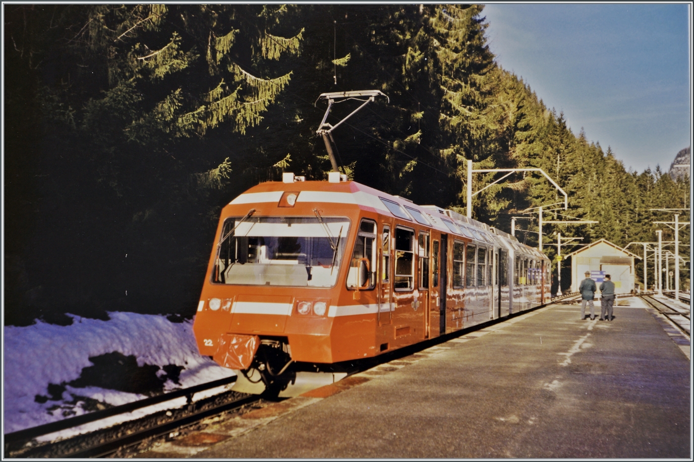 Heute steigt man in Vallorine um, etliche Jahre fuhr die SNCF bis Châtelard Frontière, aber auch schon früher fuhren M-C Züge bis Vallorcine wie des Bild eines Zugs in Salvan zeigt.