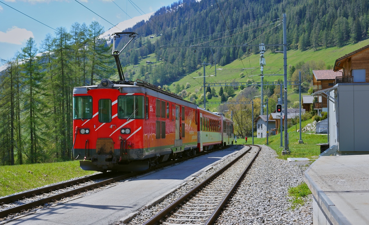 Wir verlassen am 07.09.2021 mit dem MGB Regio-Zug (Furka-Oberalp-Bahn) nach Visp, geschoben von dem Gepäcktriebwagen Deh 4/4 II - 92 "Realp", nun den Bahnhof Betten (842 m ü. M.) im Kanton Wallis (VS) und fahren weiter in Richtung Brig. Wir sind so nun vom Oberalppass bis Betten fast 1.200 Höhenmeter hinabgefahren.