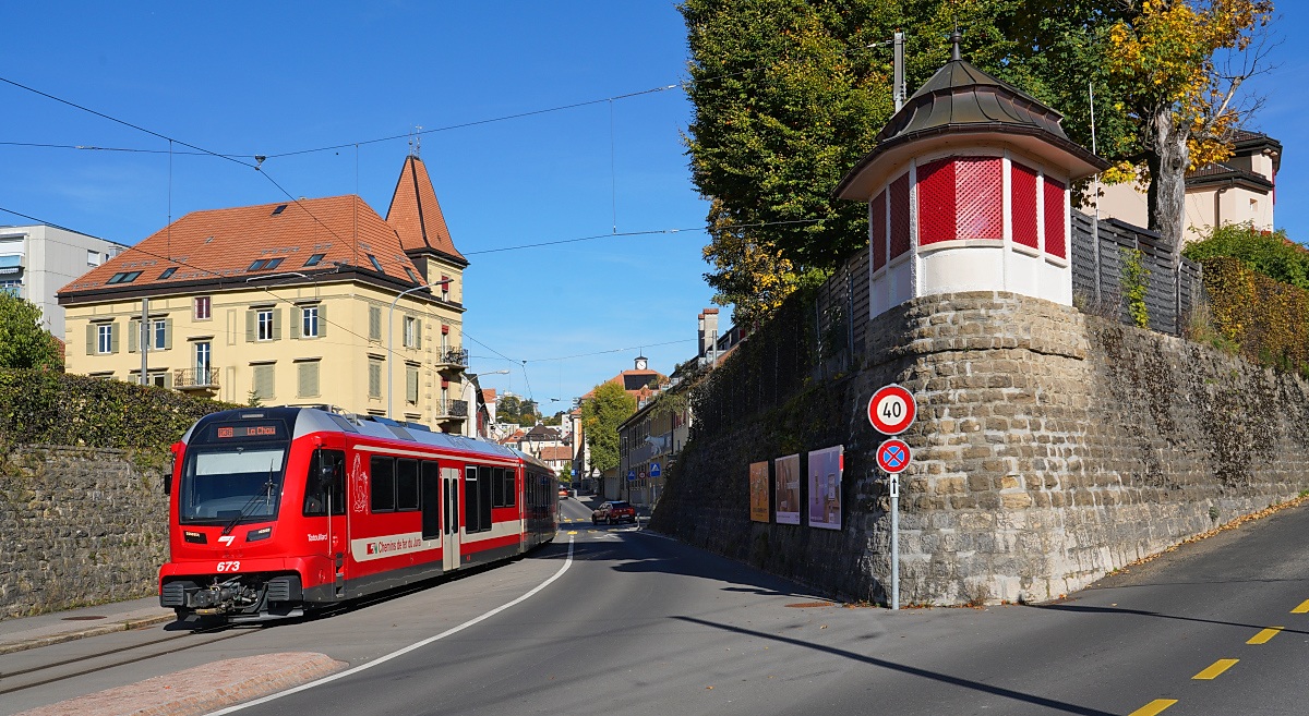 In Le Noirmont begegnen sich die beiden CJ ABe 2/6 633 und 631. Diese Triebwagen hätten mit der Inbetriebnahme der neuen ABe 4/12 verkauft werden sollen, doch durch unterbliebene Anpassungen musste die CJ nun die relativ neune  SURF  Be 4/4 abgeben.