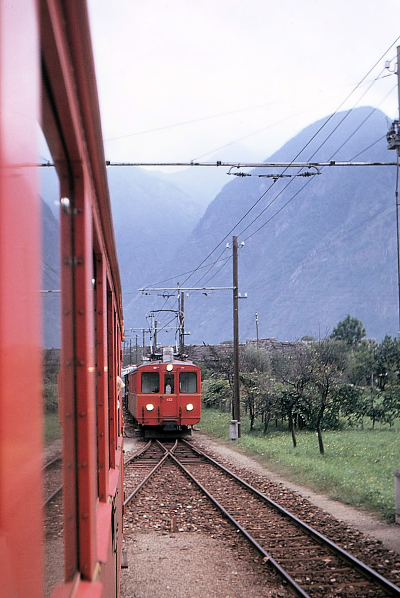 Nach der Einstellung des Personenverkehrs herrschte nur noch ein schwacher Güterverkehr auf der Misoxer Bahn, leider war an diesem Märztag 1993 kein Zug unterwegs. Was blieb, waren einige Bahnhofsaufnahmen wie hier in Grono und eine schöne Wanderung durch das Misox von Castione nach Cama.