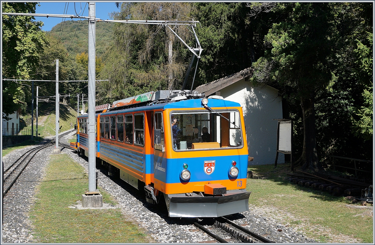 Ein Bild aus dem Talwärts fahrenden Zug auf den in San Nicolao warteten Bergwärts fahrenden Bhe 4/8 13.