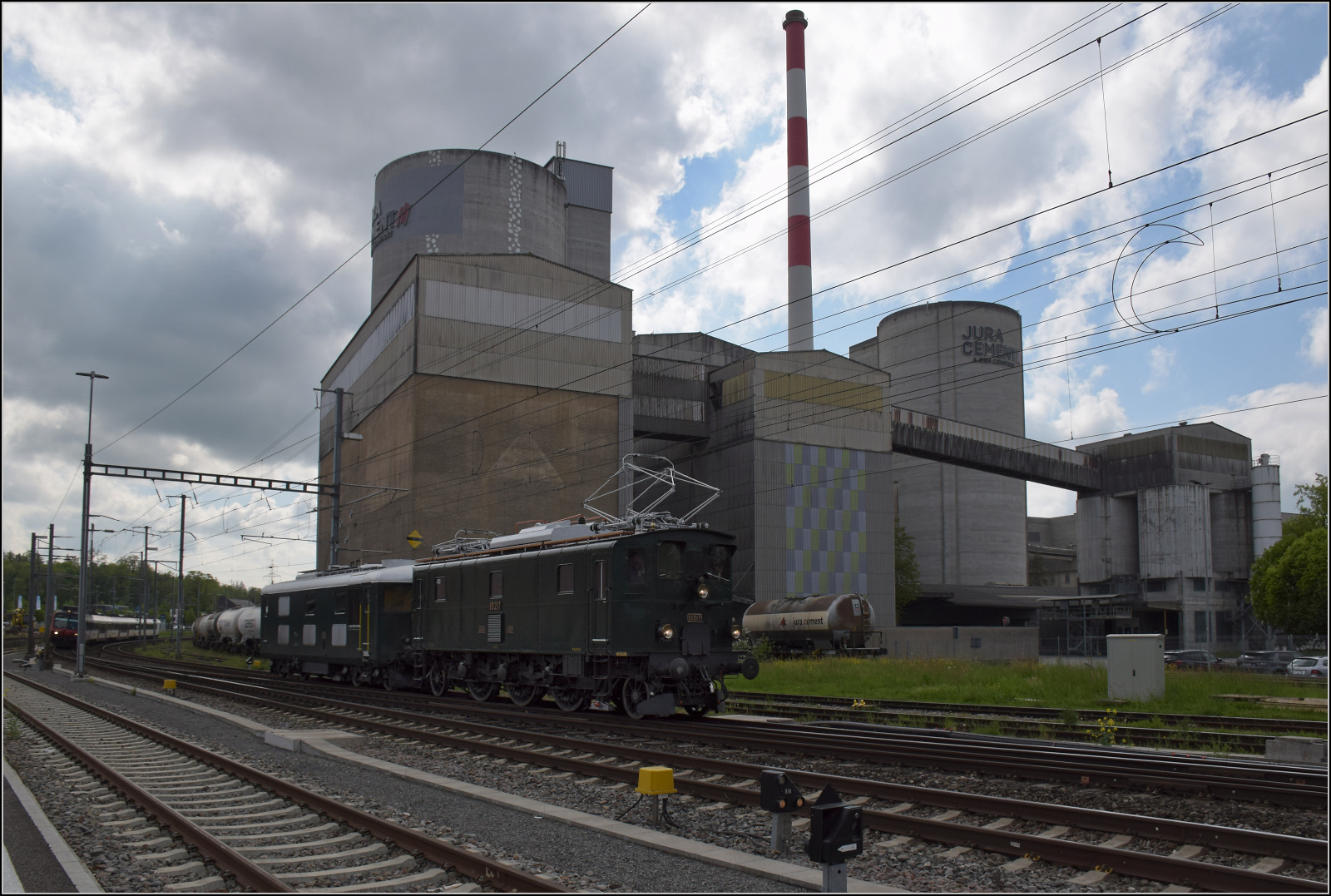 Zum Fest 150 Jahre Nationalbahn durfte Bm 4/4 II 18451 nach einer kleinen Ewigkeit von 10 Jahren endlich wieder an die frische Luft und wurde von Ae 3/5 10217 an ihren früheren Einsatzort nach Etzwilen gebracht. Unverwechselbar der gleiche Baustil der Re 4/4 I 2. Serie, für die sie Pate war. Hier am Beginn der Reise in Däniken, April 2025.