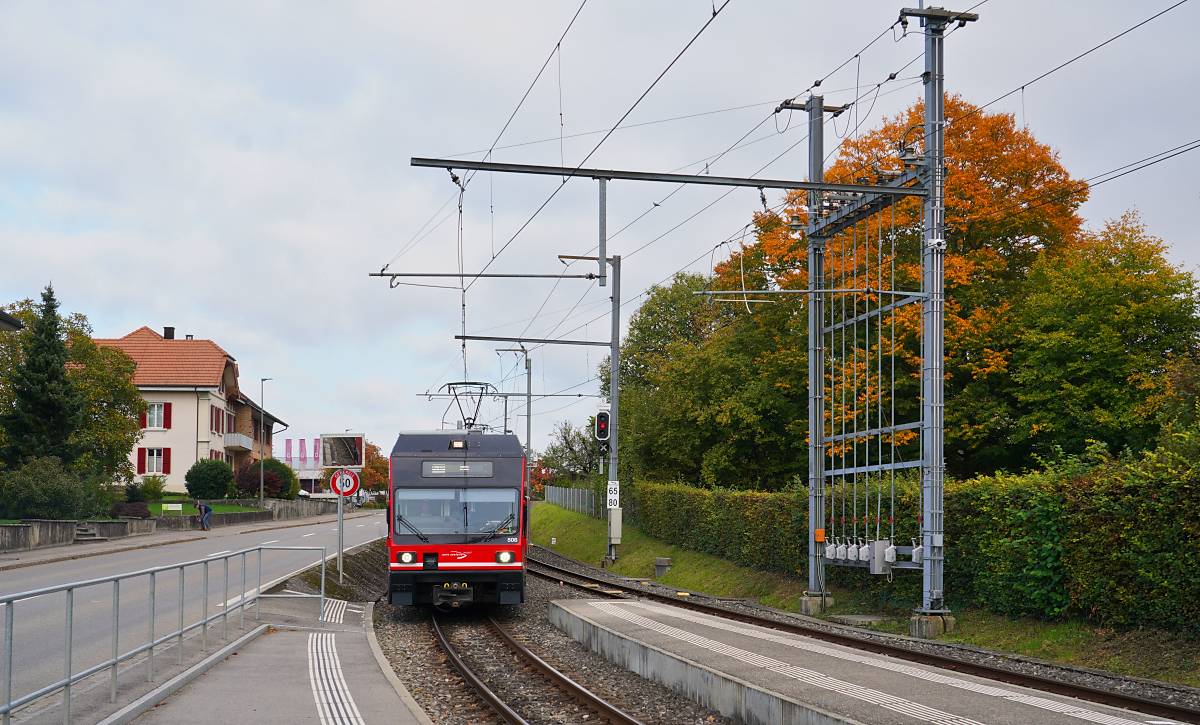 Obwohl der Pfeiler des Bahnsteigs die beiden Züge optisch trennt, haben die beiden Strecken technisch viele Gemeinsamkeiten, so dass Einsatz der Züge auf beiden Strecken möglich ist und hin und wieder auch praktiziert wird. So ist geplant, dass der neue CJ ABe 4/8 bei Bedarf einen in der Revision befindlichen transN ABe 4/8 ablösen wird...