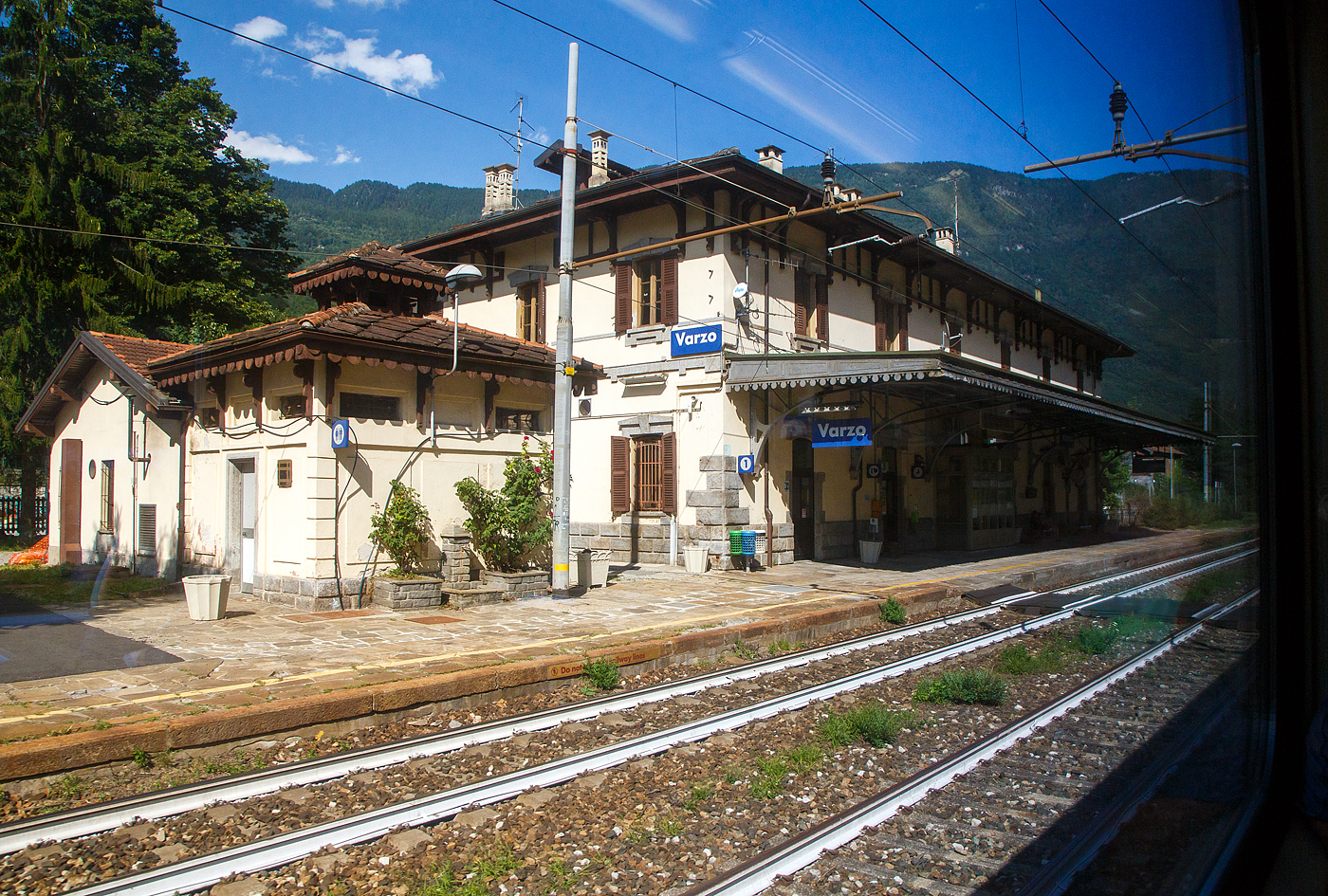 Ein SBB RABe 503 (ETR 610) auf dem Weg Richtung Milano bei der Durchfahrt in Varzo.