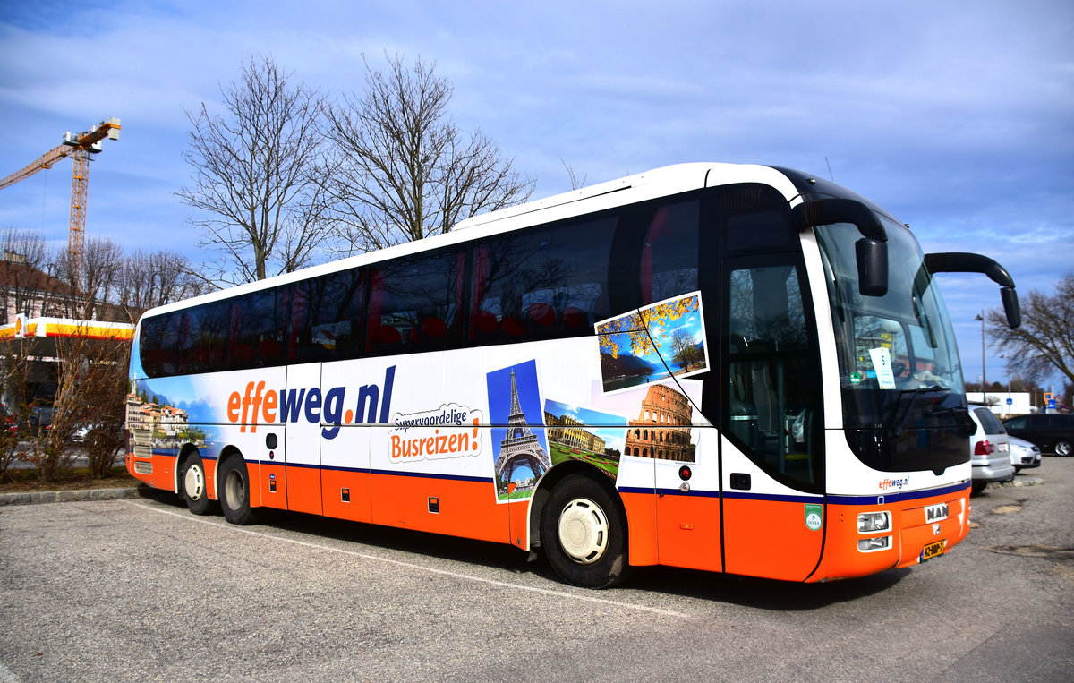Van Hool TX16 von effeweg.nl aus den Niederlanden mit Anhänger im Stadthafen Sassnitz.
