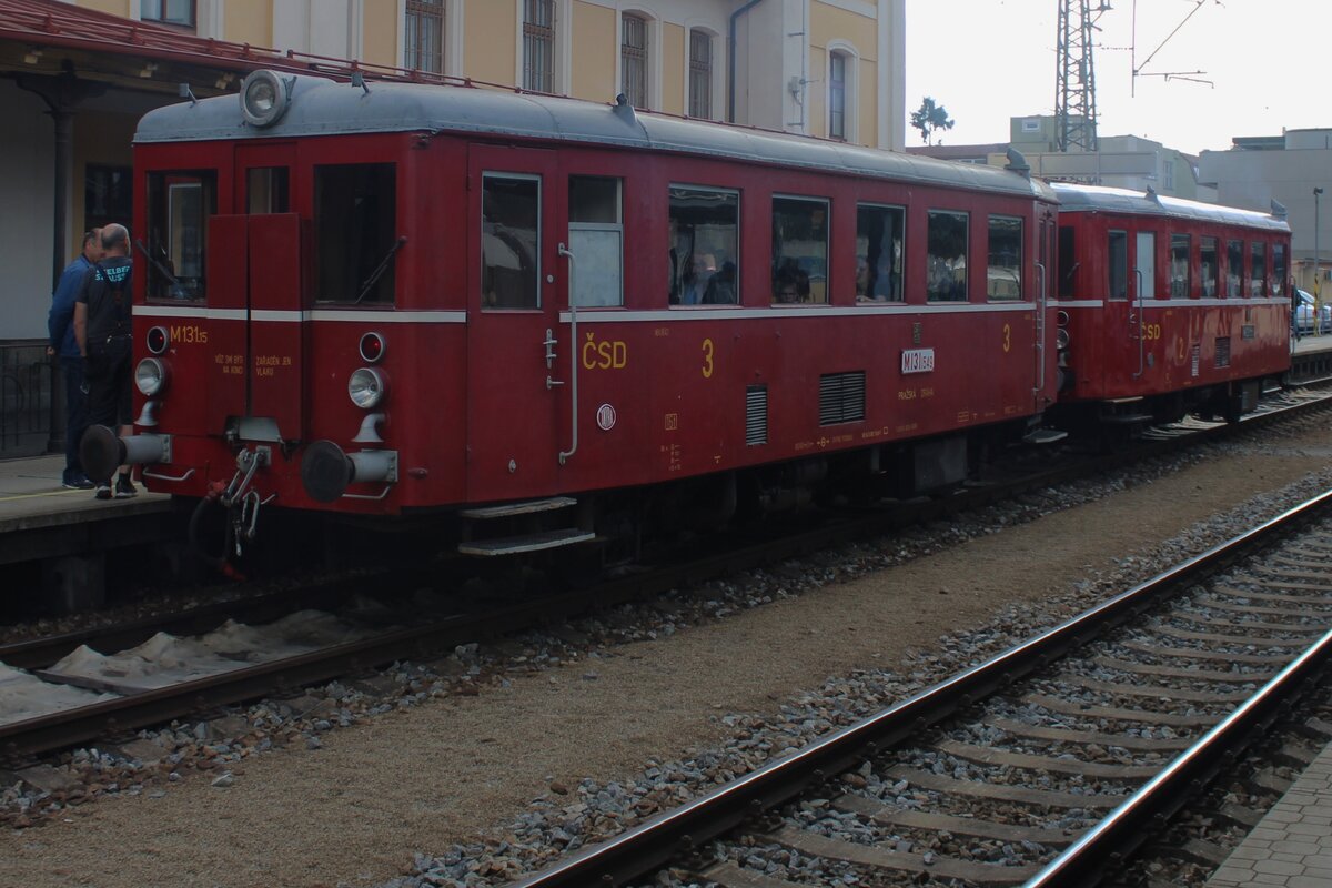 M131-1549 verlasst Benesov u Prahy mit Quälm als Sonderzug nach Vlasim am 27 September 2025.