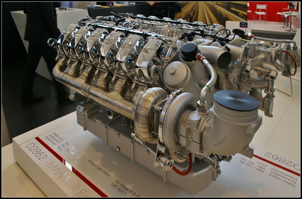 InnoTrans 2016 in Berlin: Blick in einen Teil des Motorraums der Alstom Prima H3 hybrid, die bei Metrans in Hamburg im Einsatz ist.