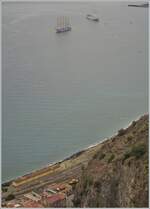 ein wunderbarer Blick auf den Bahnhof Taormina Gardini vom Meer her.