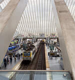 Im Sandwich zweier SNCB/NMBS der Serie 18, geführt von der HLE 1810 und einer schiebenden HLE 18er, fährt der IC 536 (Eupen - Lüttich/Liège-Guillemins - Brüssel – Gent – Brügge – Ostende), am 21 Oktober 2025 in den Bahnhof Liège Guillemins (Lüttich-Guillemins) ein. Zwischen den beiden Lok vom Typ SIEMENS EuroSprinter ES60U3 waren 6 SNCB M7-Doppelstock-TWINDEXX-Wagen, 2 SNCB Reisezugwagen Typ I10 B sowie 2 SNCB Reisezugwagen Typ I11 B. (zum Bild)